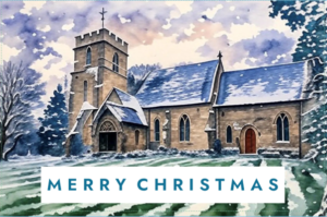 A christmas card with an original design by Trevor England and brought up to date by Laura Barker is now on sale and can be ordered from Mrs. Christne Waters .